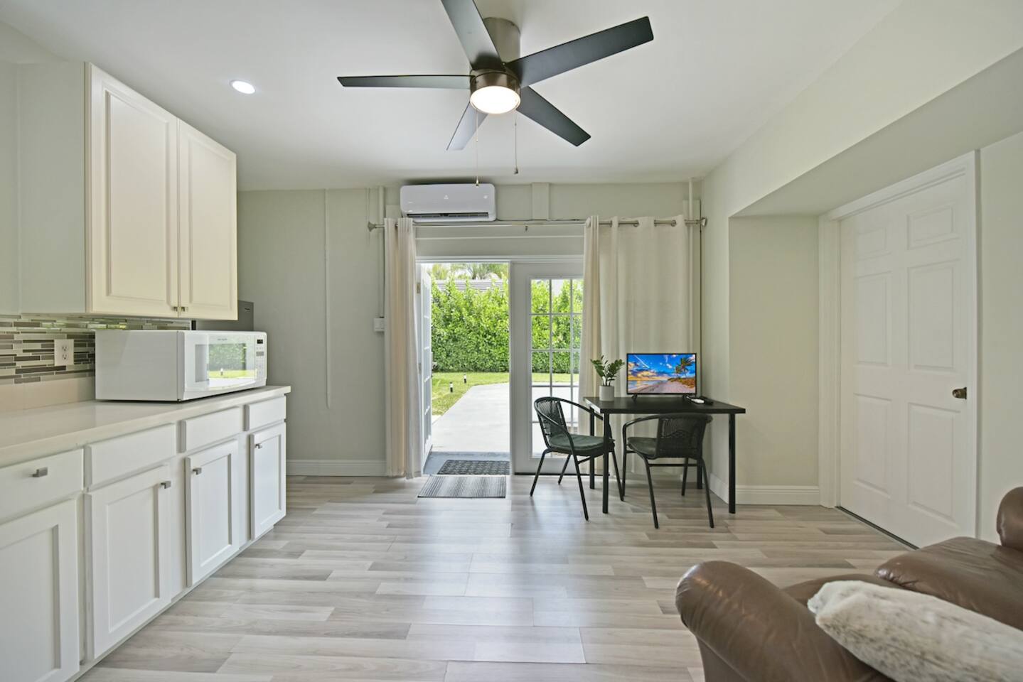 This 325 sq feet unit with a private entrance and free parking on-site, located in beautiful and safe neighborhood, sounds perfect for solo travelers looking for short to mid-term stays. You can start your day with hot or cold coffee in the morning or a smoothie with fresh toast. Enjoy the sounds of birds singing on the patio throughout the day. Make yourself at home in our inviting bedroom and bathroom, perfect for solo traveler! Some of our guests reviews: “Amazing place and experience…” Rai “Very nice” Allan Highlights: Small kitchenette with a: *microwave, *coffee machine, *toaster, *blender, and *electric cooktop, *kettle, *air Freud as well as necessary dishes and silverware for simple meals. Just note there's no stove, dishwasher, or cooking oven. The studio concept features a living area with a 2-seater leather couch and dining table. Entertainment: 24” TV with Roku and Prime Channel access. The bedroom offers a queen bed with Egyptian cotton or smooth microfiber linens and hypoallergenic pillows for a restful night’s sleep. It also features a clothes rack with hangers and a dresser, though it does not have a window. Outside - there's a patio with a chair and small coffee table, Perfect for enjoying Florida’s beautiful weather. The bathroom - boasts a spacious shower, though there are steps and the sink may be uncomfortable for taller individuals. The WC is snugly positioned between two walls (the distance between 24”), so ensure you're comfortable with the layout. Laundry - options are available within a 5-10 minute drive. Complimentary - coffee, tea, body wash, shampoo, and conditioner are provided for your convenience. We look forward to hosting you in our cozy bedroom and bathroom unit, perfect for solo travelers, nestled in a safe and beautiful neighborhoo!